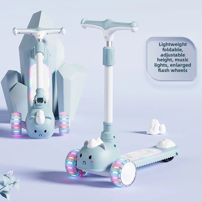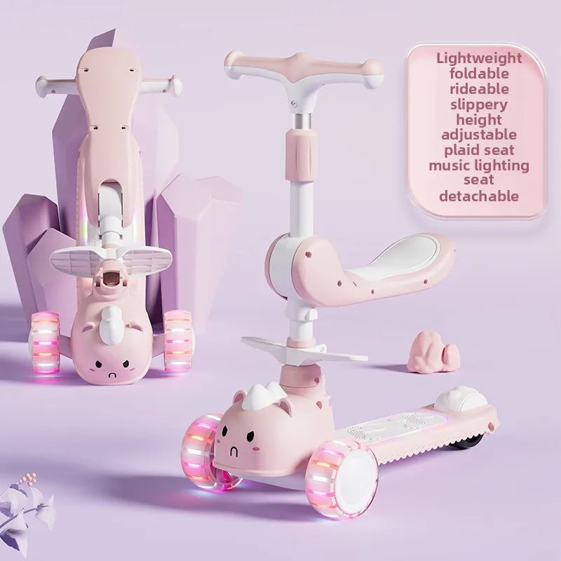 2-In-1 Children's Scooter Baby Kickboard 3 Height Adjustable 3-Wheel Music Light Foldable Micro Kcik Scooter Boy Girl Ages 2-10