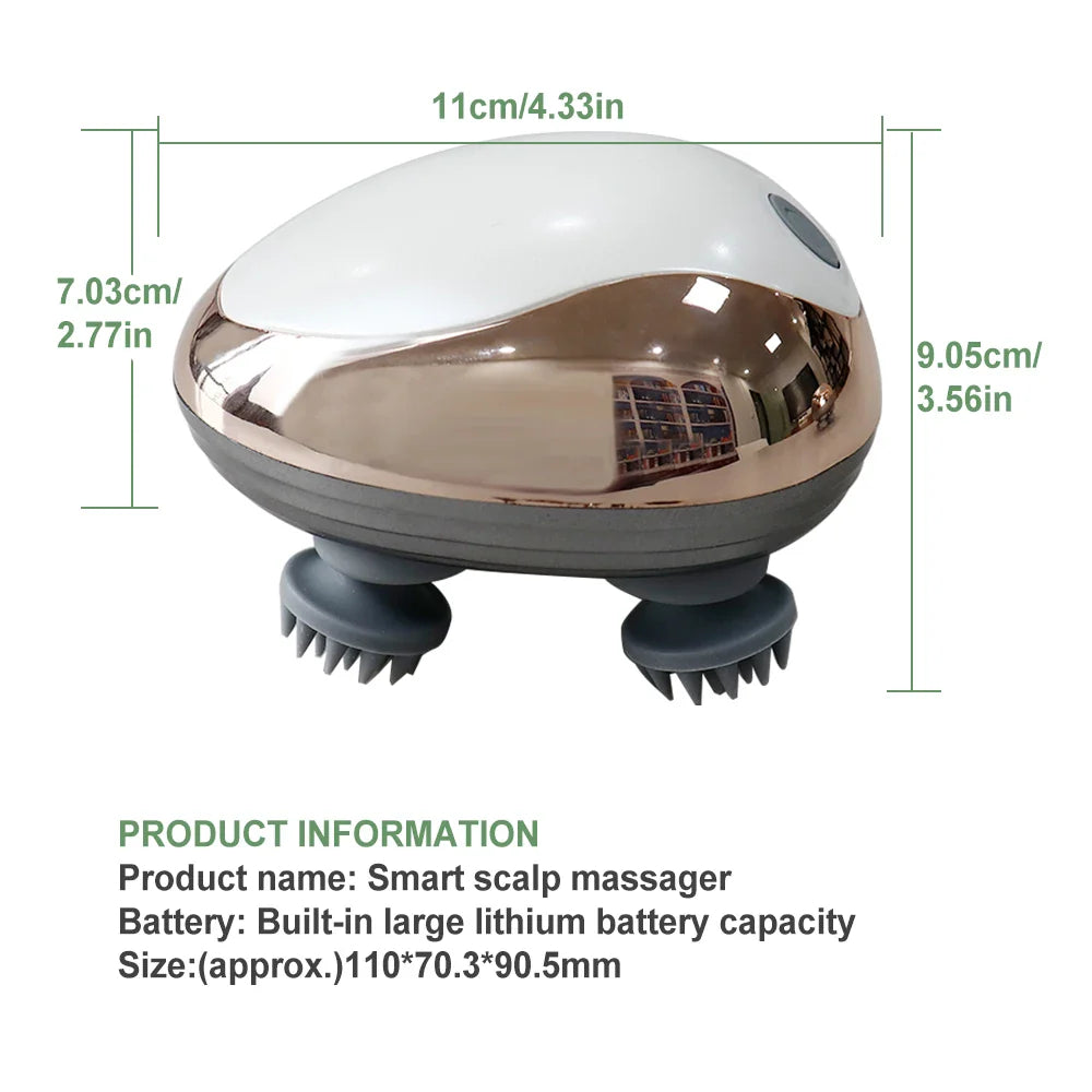 Four-Finger Kneading Massage: Electric scalp massager,easy 1 button operation.