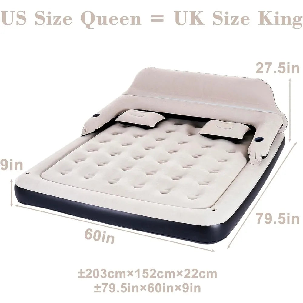 Queen Size Air Mattress Sofa Bed with Headboard and Pillow, Inflatable Bed for Outdoor Overnight